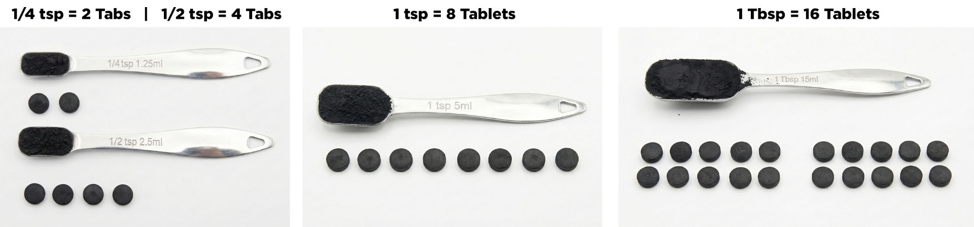 USP (US Pharmacopoeia) Food-grade activated charcoal tablets are made from steam-activated Acasia charcoal that has been processed to meet purification standards required for medical use.